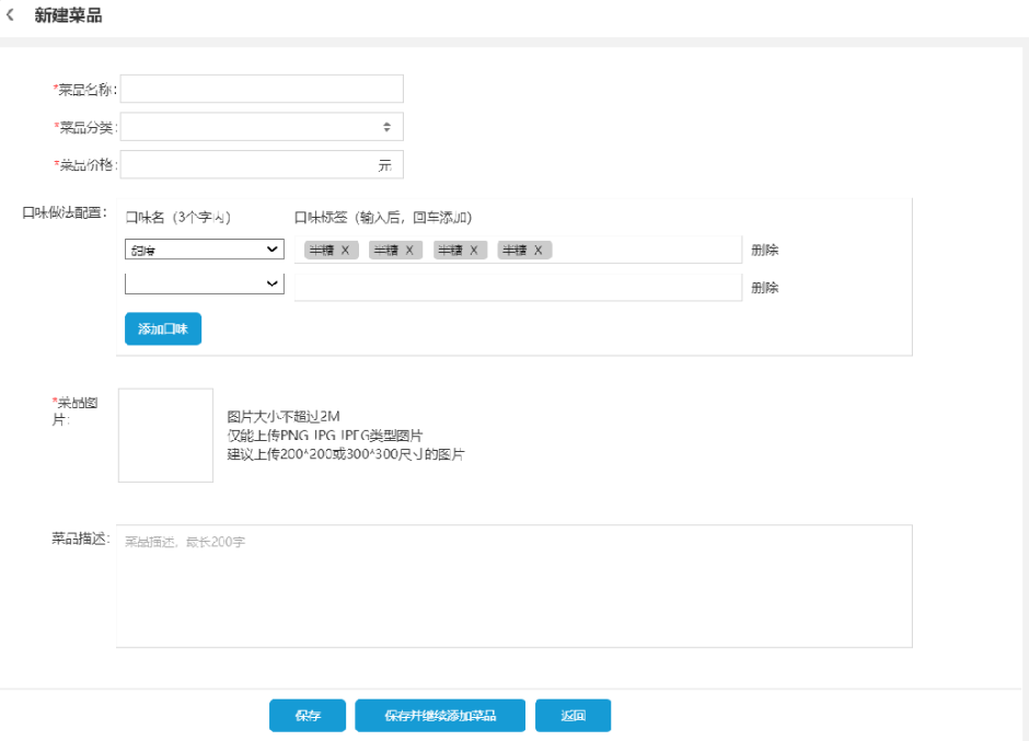在编辑员工和编辑菜品分类时,需要设置以下字段:
