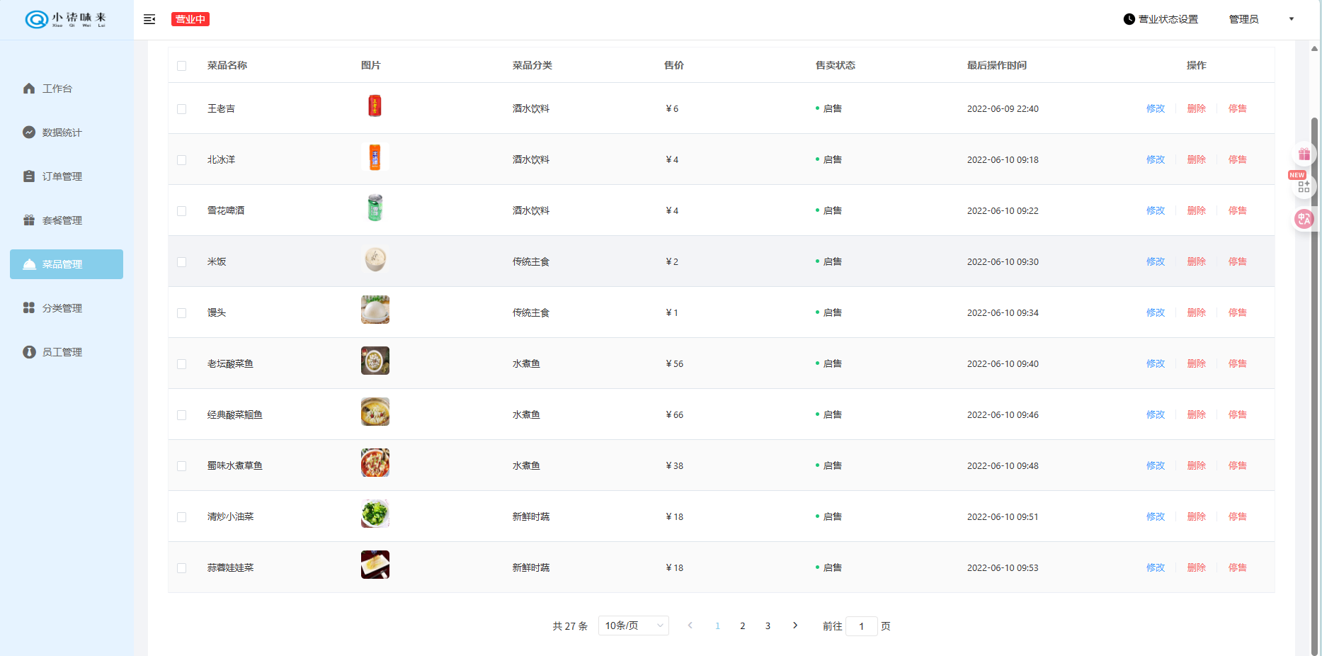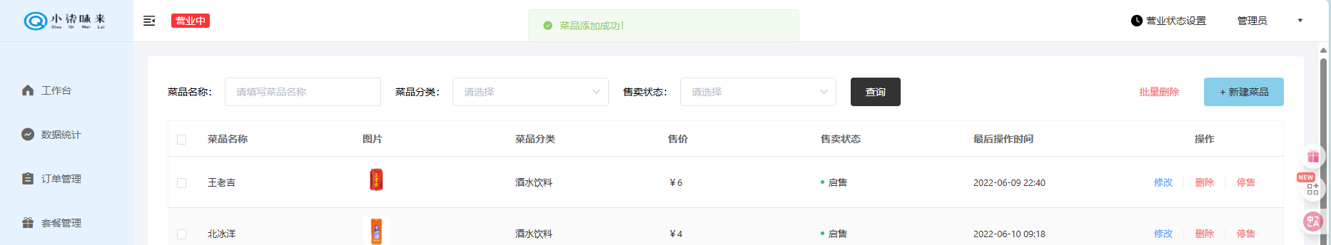 关于菜品管理就基本实现了,下一章小柒味来 - 店铺营业状态接口实现