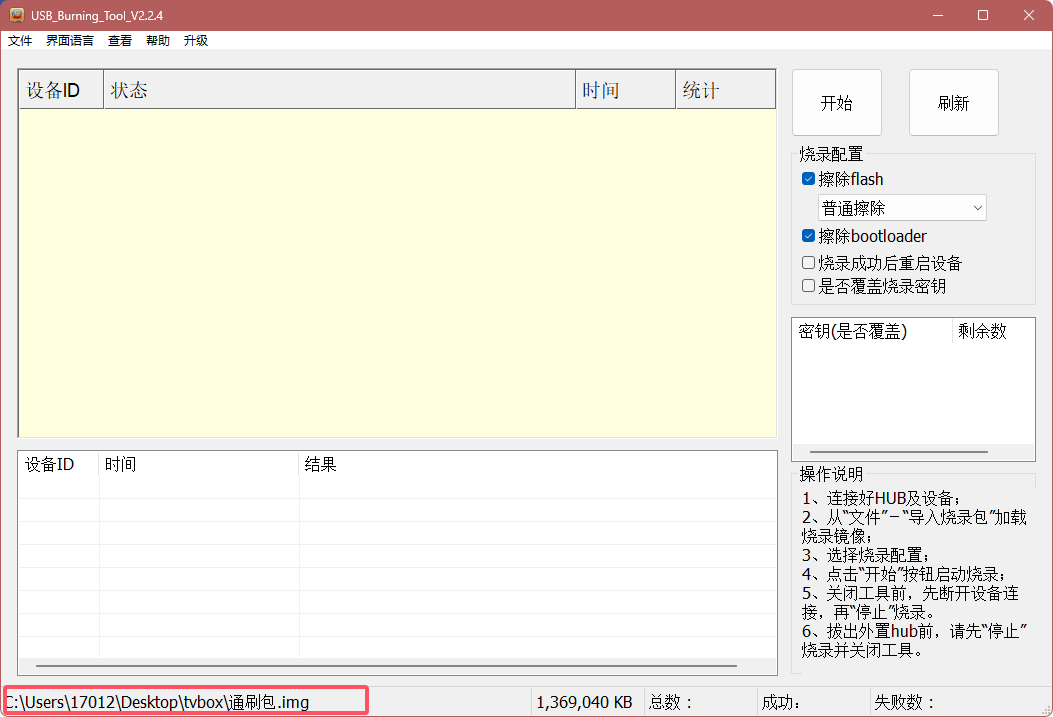 打开工具 → 文件 → 导入烧录包 → 选择下载的固件。