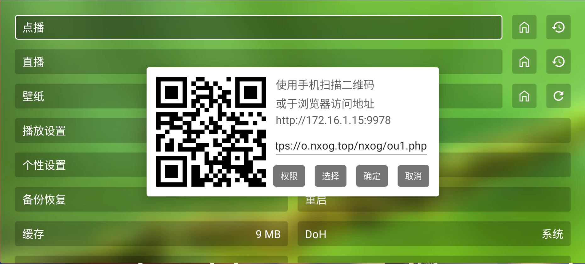 - 打开设置 → 选择点播 → 访问链接地址(与电视在同一网络下的设备)